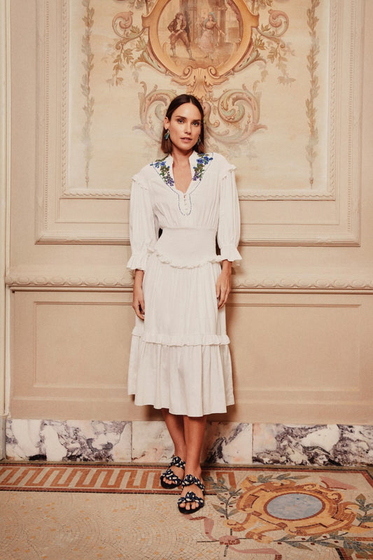 VESTIDO MÍDI JARDIM DAS ROMÃS OFF WHITE