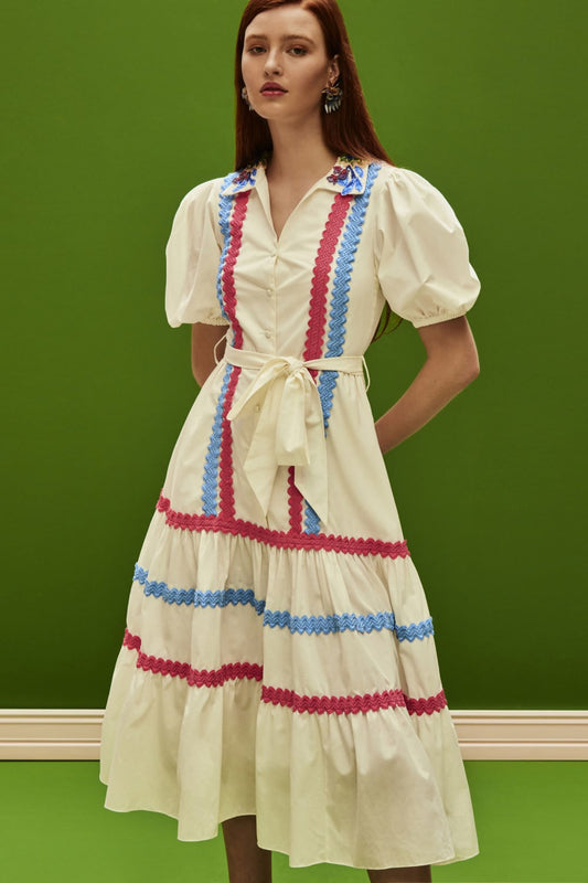 VESTIDO MÍDI LAÇO TRICOLINE RETRÔ OFF WHITE