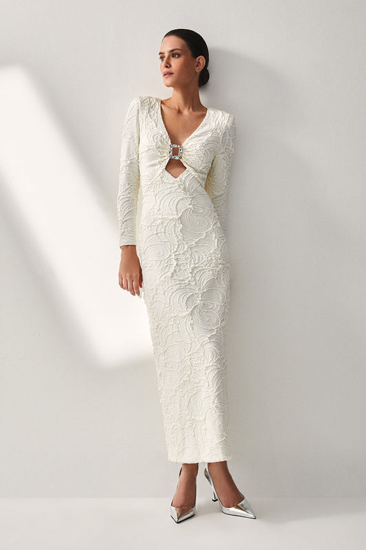 VESTIDO MIDI MALHA GAVEA OFF WHITE
