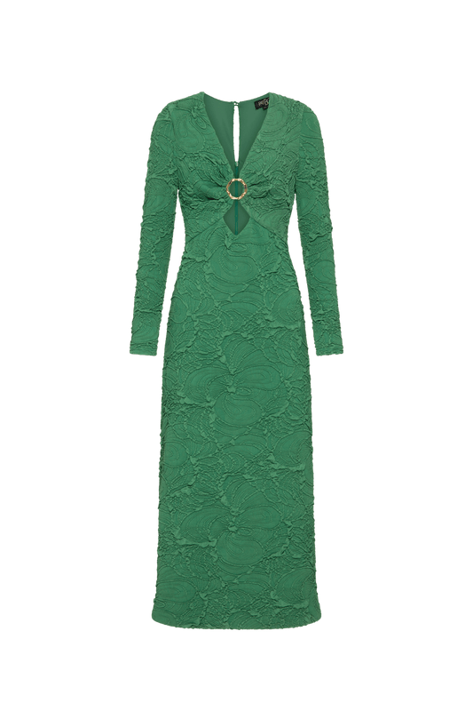 VESTIDO MÍDI MANGA LONGA MALHA BASEL VERDE