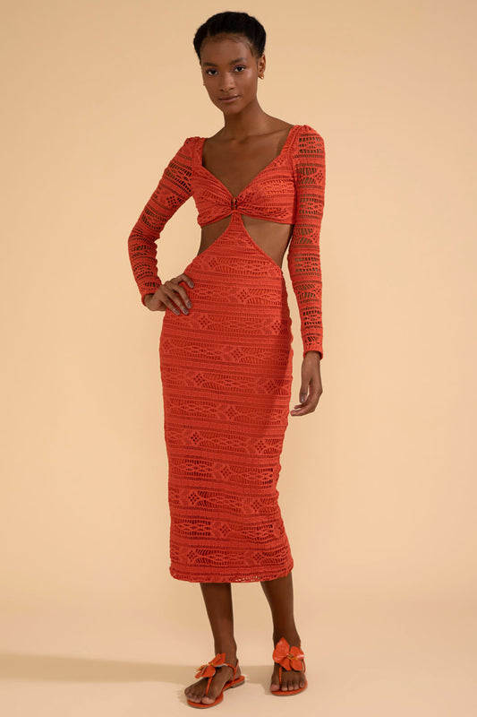VESTIDO MÍDI MANGA LONGA LYCRA APRICOT LARANJA