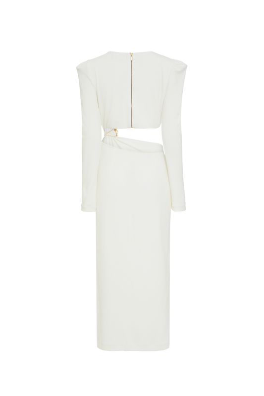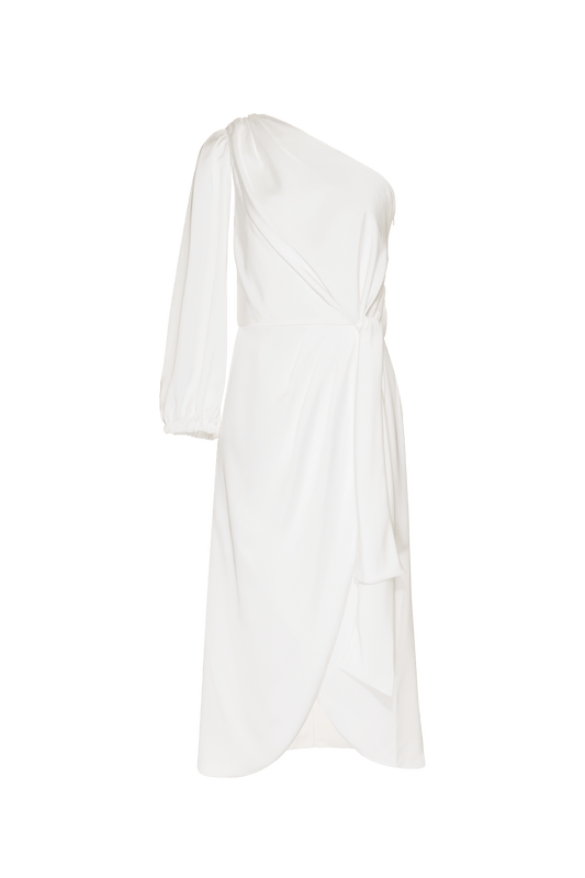 VESTIDO MÍDI MANGA ÚNICA CETIM MONALISA OFF WHITE