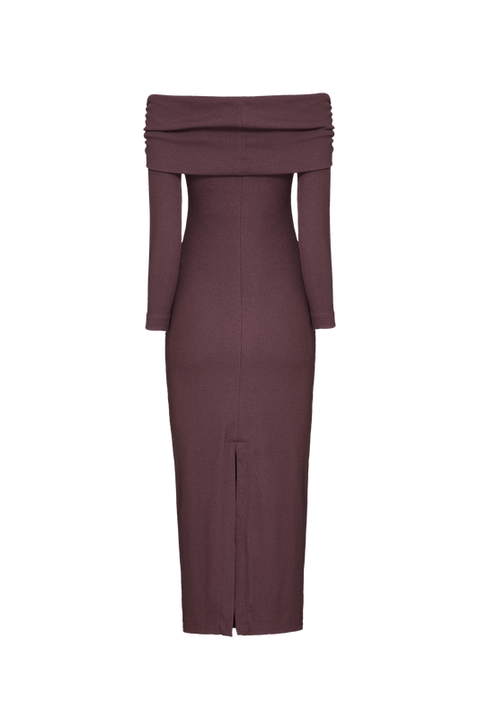 EsgotadoVESTIDO MIDI MALHA MERIAN MARROM