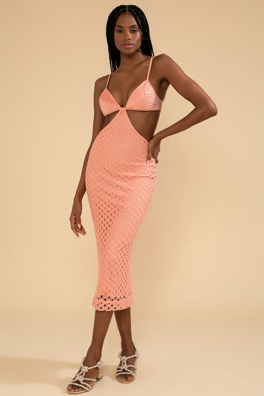 VESTIDO MÍDI MANGA LONGA LYCRA APRICOT PINK