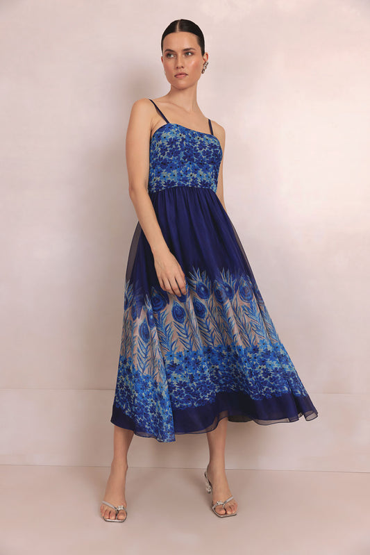 VESTIDO MÍDI OMBRO A OMBRO STARGAZER AZUL MARINHO
