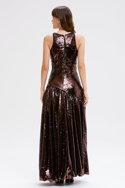 VESTIDO MÍDI PAETÊ CELESTIAL MARROM