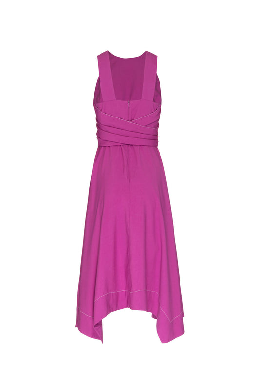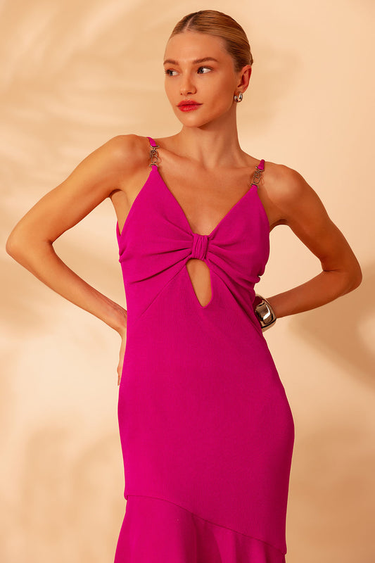 VESTIDO MÍDI RECORTE GEOMÉTRICO PUNA ROSA