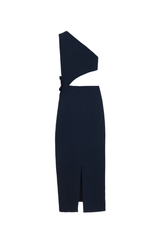 VESTIDO MÍDI RECORTE LISO GEOMÉTRICO PUNA AZUL