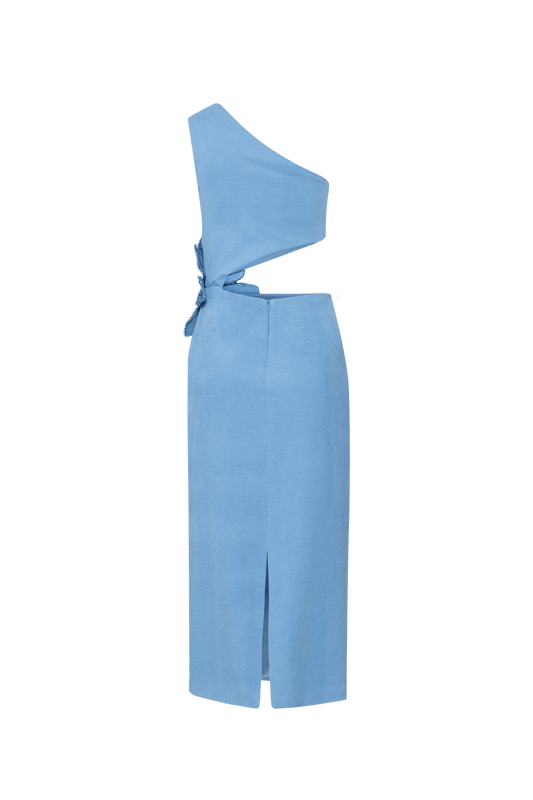 VESTIDO MÍDI OMBRO ÚNICO GEMINI ACQUA AZUL