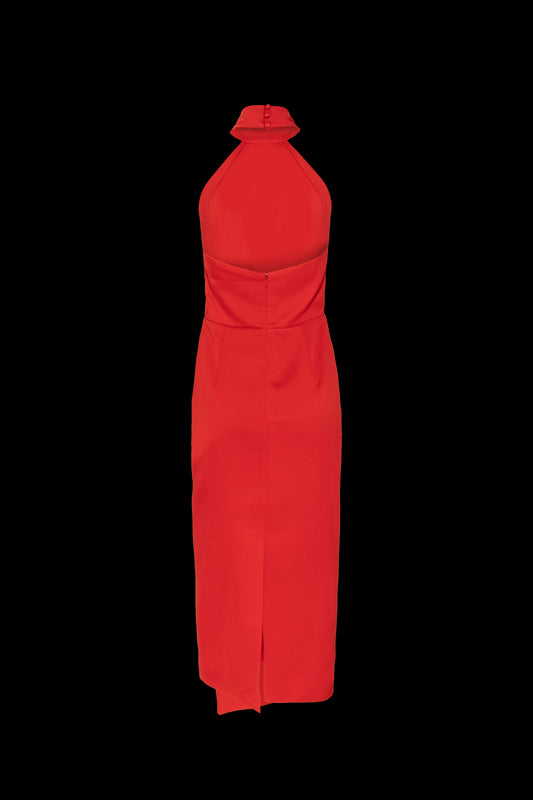 VESTIDO MÍDI PREGAS CREPE DESIRE VERMELHO