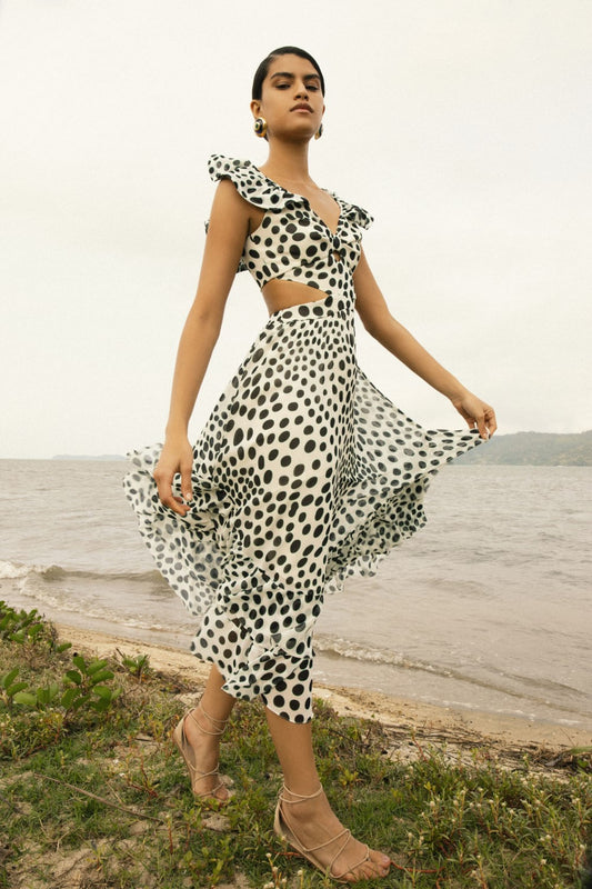 VESTIDO MÍDI RECORTES LAISE CHARMS OFF WHITE