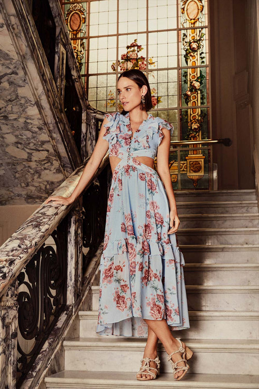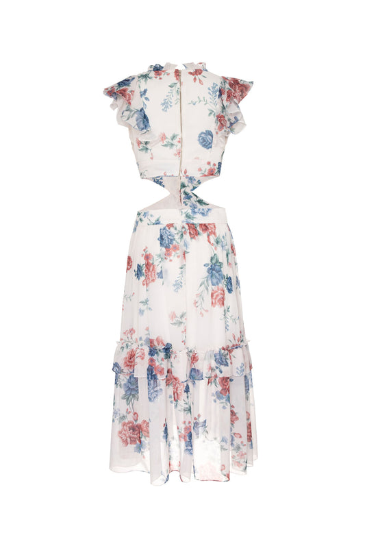 VESTIDO MÍDI RECORTES FLORAL OLGA AZUL