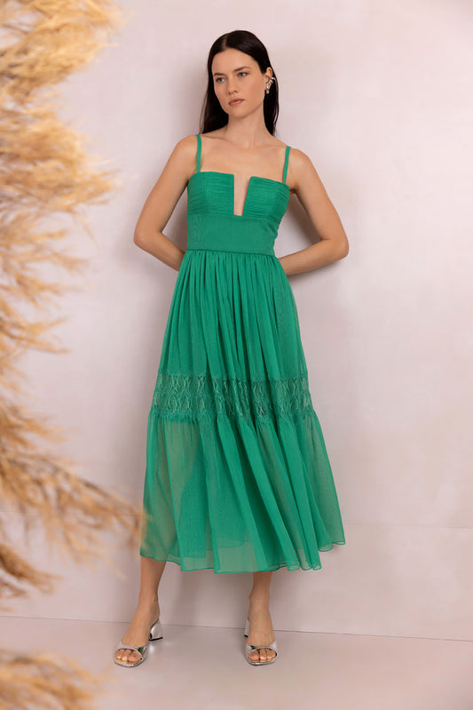 VESTIDO MIDI TAFETÁ 530 VERDE