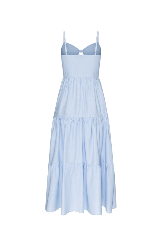 VESTIDO MÍDI RECORTES LINHO RICHELIEU URBAN AZUL