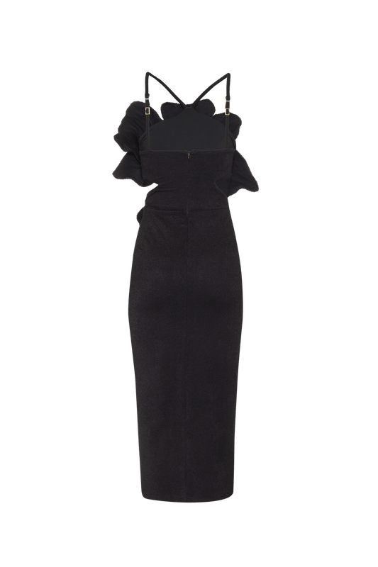 VESTIDO MIDI TAFETÁ BLOOM PRETO