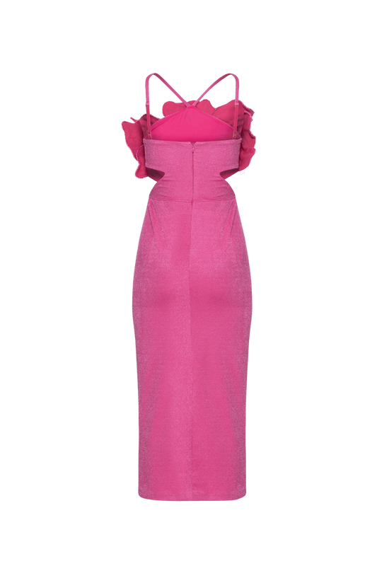 EsgotadoVESTIDO MÍDI RECORTES DISCO ROSA