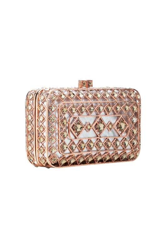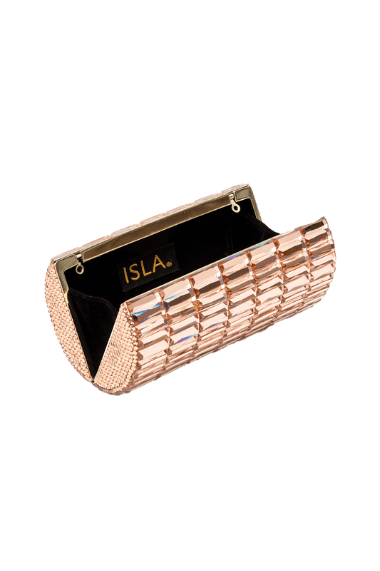 BOLSA CLUTCH METAL TRAMA MAXI CRISTAIS TOPÁZIO ROSE