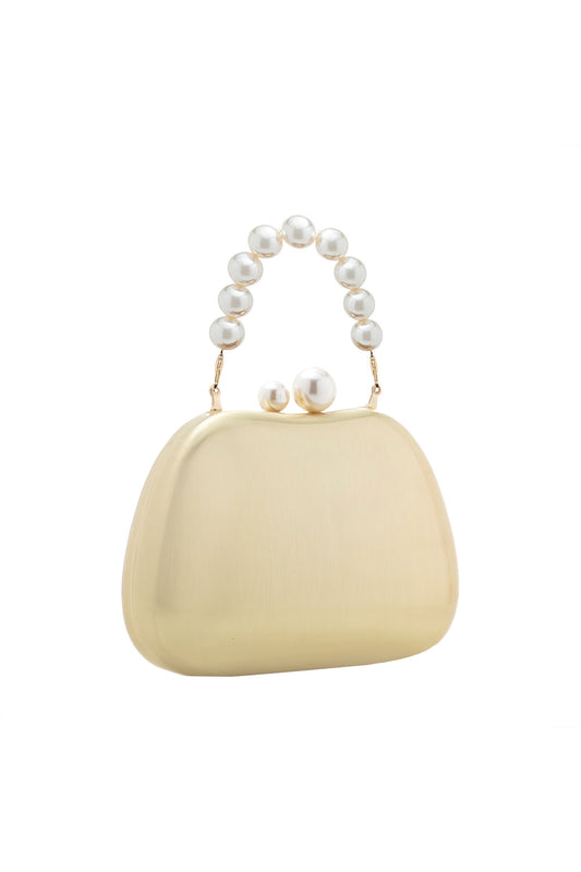 BOLSA CLUTCH METAL PINO E ALÇA PÉROLAS OURO ESCOVADO