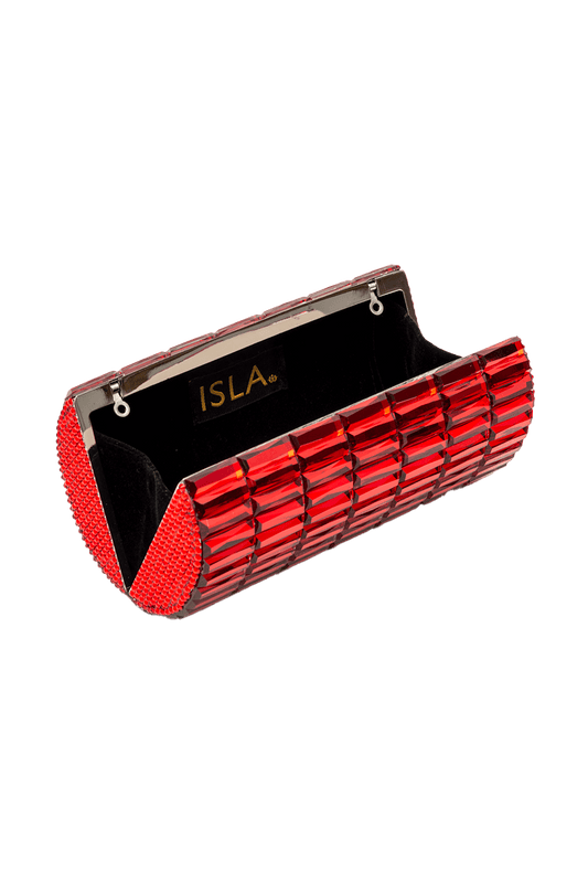 BOLSA CLUTCH METAL OVAL CRISTAIS VERMELHO