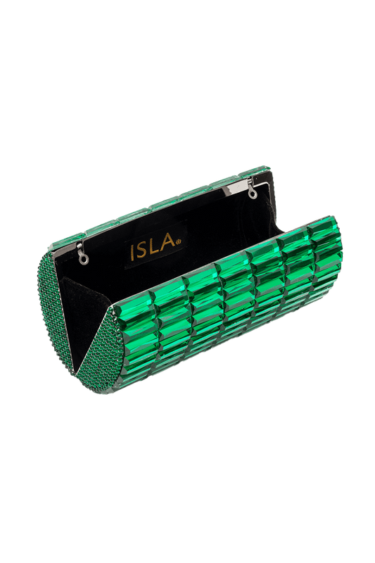 BOLSA CLUTCH METAL OVAL CRISTAIS VERDE