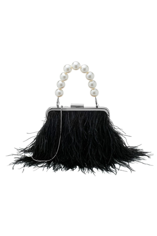 EsgotadoBOLSA CLUTCH PLUMAS PÉROLAS PRETO