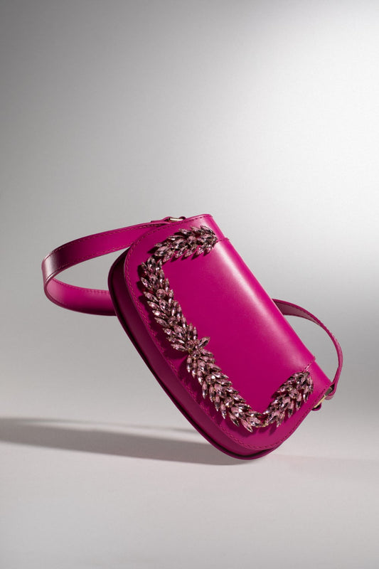 BOLSA TIRACOLO COURO CRISTAL PEQUENA PINK
