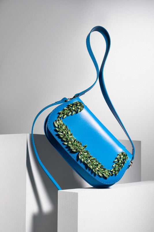BOLSA TIRACOLO COURO CRISTAL PEQUENA AZUL