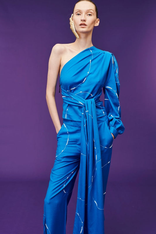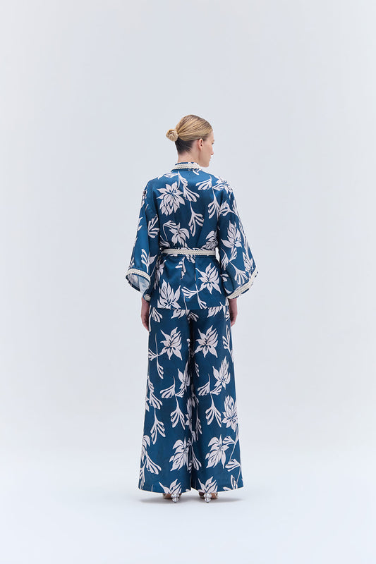 CALÇA BORDADA LINHO RICHELIEU URBAN AZUL