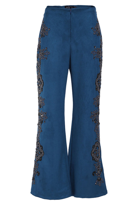 CALÇA BORDADO NEW RADIANT VELVET AZUL PETRÓLEO