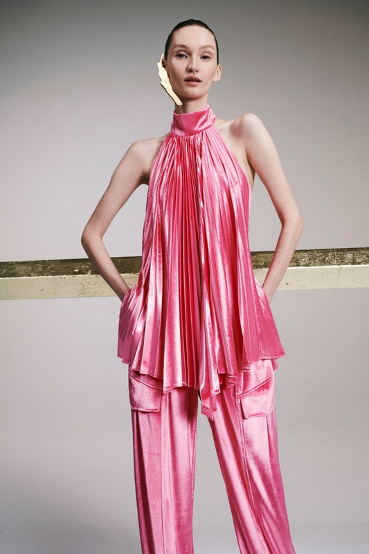 EsgotadoCALÇA BOLSOS VELUDO ROSA