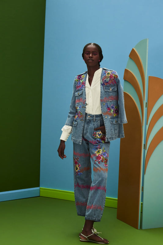 EsgotadoCALÇA BORDADA DENIM AZUL