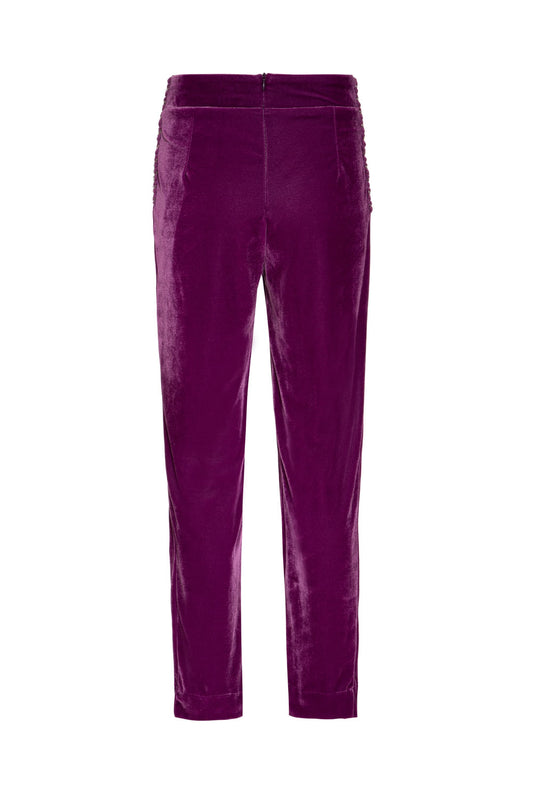 EsgotadoCALÇA BORDADA VELUDO CRYSTAL ROXO
