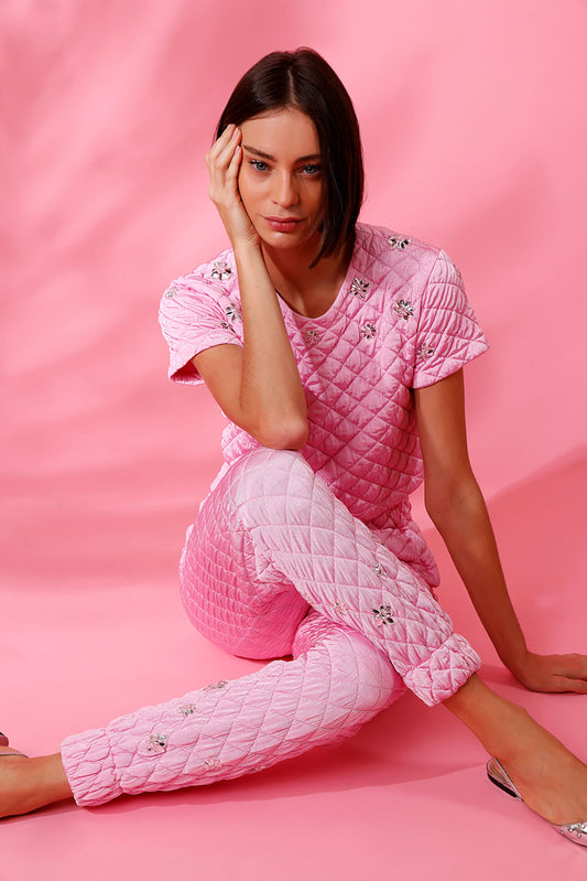 CALÇA BORDADA MATELASSÊ SHINE DROP ROSA