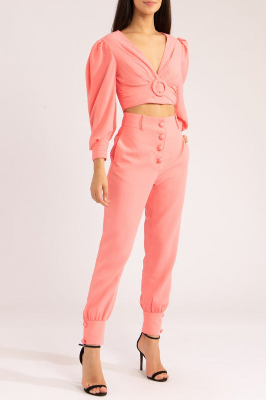 EsgotadoCALÇA BOTÕES CETIM RAMPLING PINK