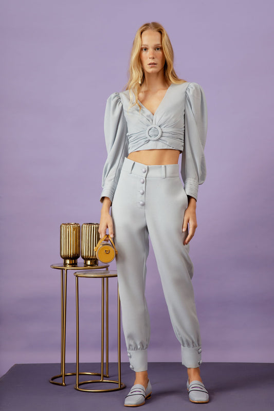 EsgotadoCALÇA BOTÕES SILKY GAIVOTA AZUL