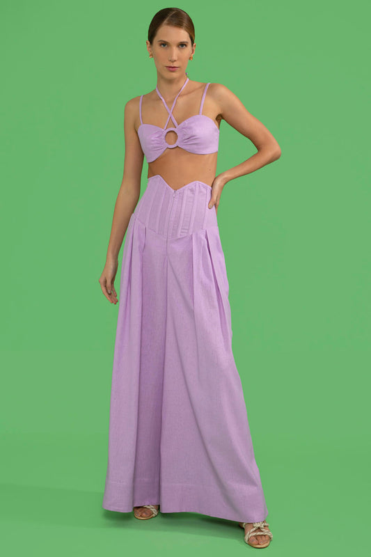 CALÇA CÓS ESTRUTURADO LINHO BALNEÁRIO LILAS