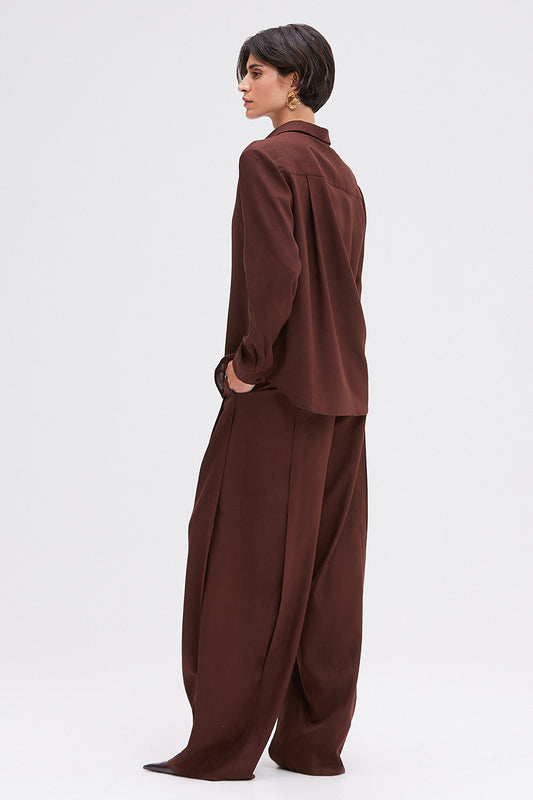EsgotadoCALÇA LINEN INTENSE RUST MARROM