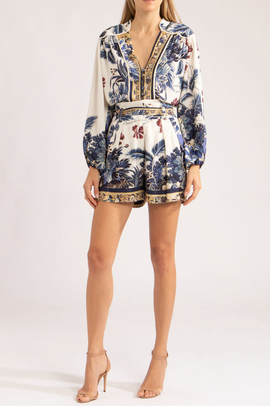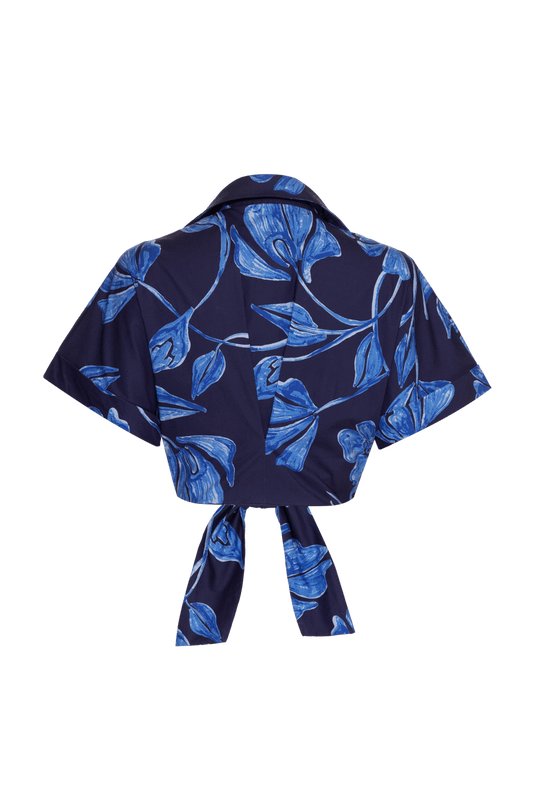 CAMISA AMARRAÇÃO SUZY FLOWER AZUL MARINHO