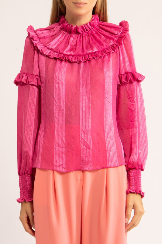 EsgotadoCAMISA GOLA BABADO SILK DOTS PINK