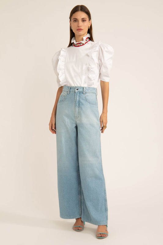 CAMISA MANGAS BUFANTES BORDADO TRICOLINE SPENCER OFF WHITE