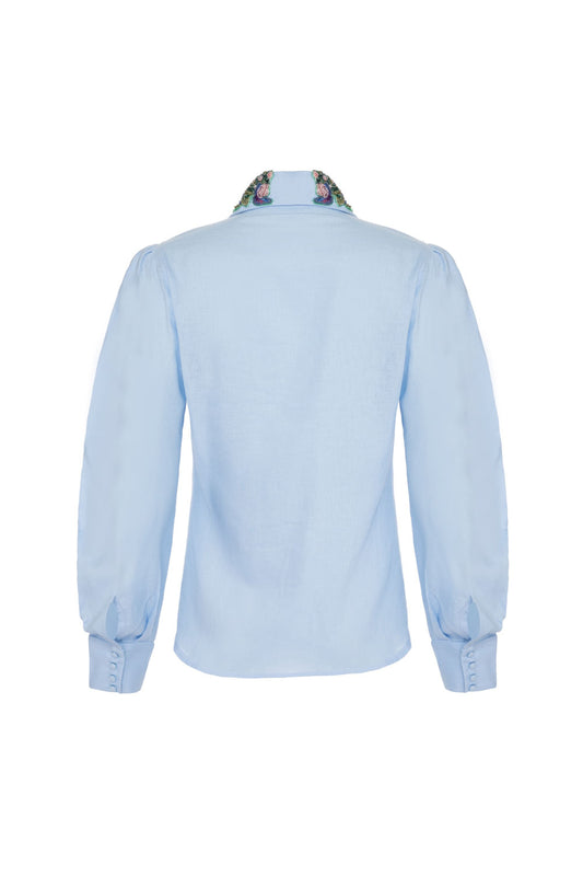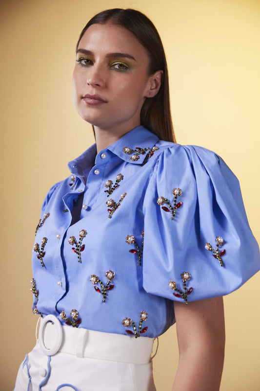CAMISA MANGAS BUFANTES BORDADO TRICOLINE SPENCER AZUL