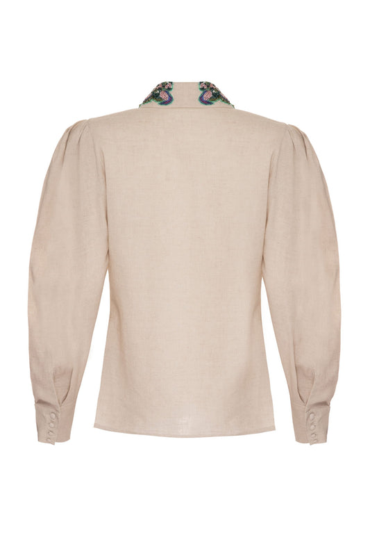 EsgotadoCAMISA LINHO GOLA BORDADA NATURAL