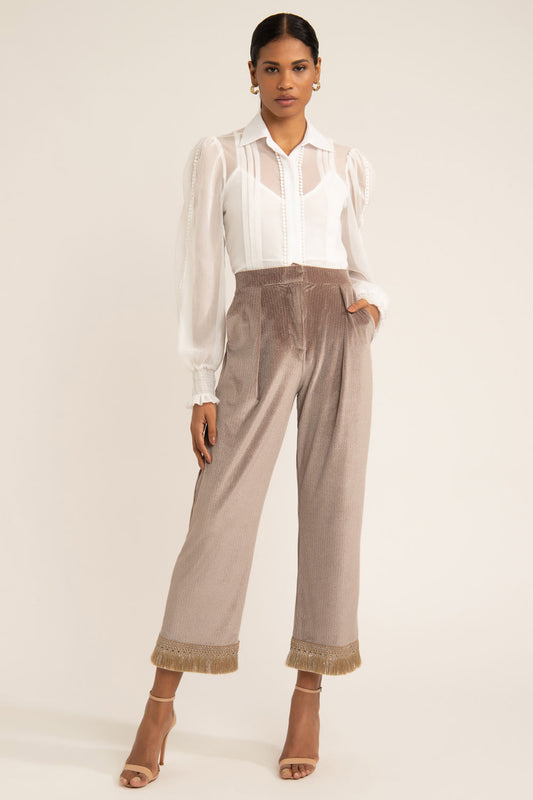 EsgotadoCAMISA SILKY PLISSÊ OFF WHITE