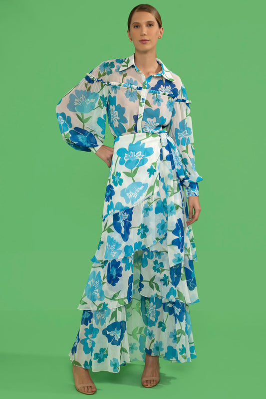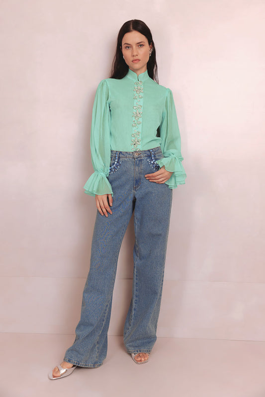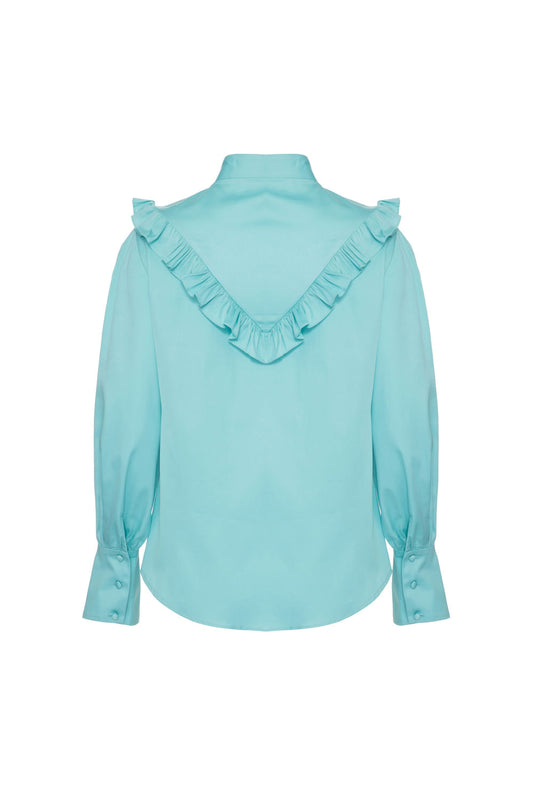 EsgotadoCAMISA RECORTE BABADO AZUL
