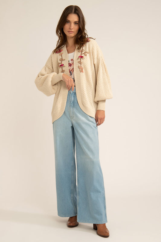 CARDIGAN ABERTO BORDADO TRICOT GYPSY OFFWHITE