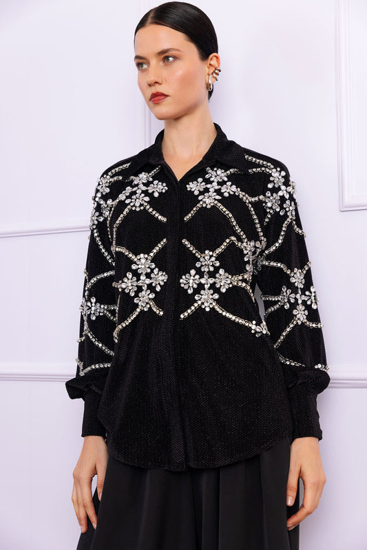 CAMISA TRANSPASSADA CETIM MONALISA PRETO