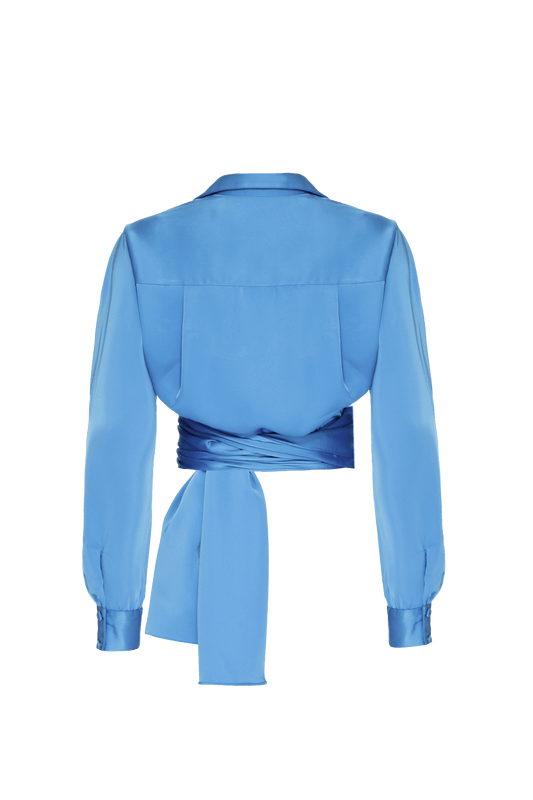 CAMISA TRANSPASSADA CETIM MONALISA CELESTE