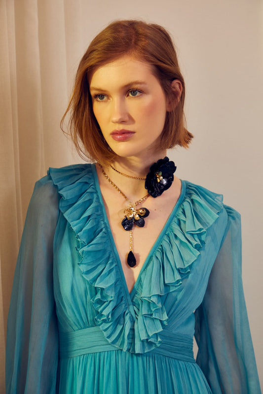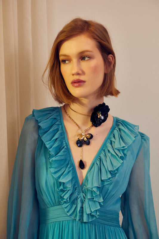 EsgotadoCOLAR CHARME FLOR CAMÉLIA PRETO