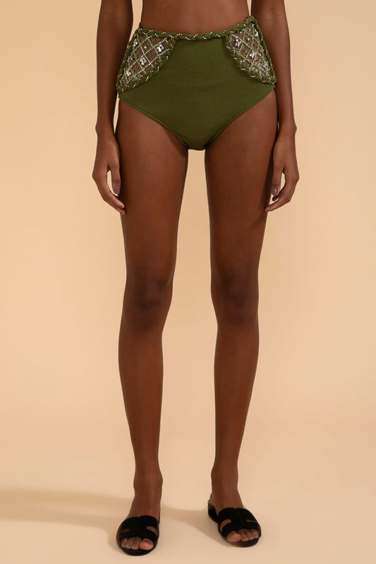 EsgotadoHOT PANTS BORDADA MALHA BASEL VERDE