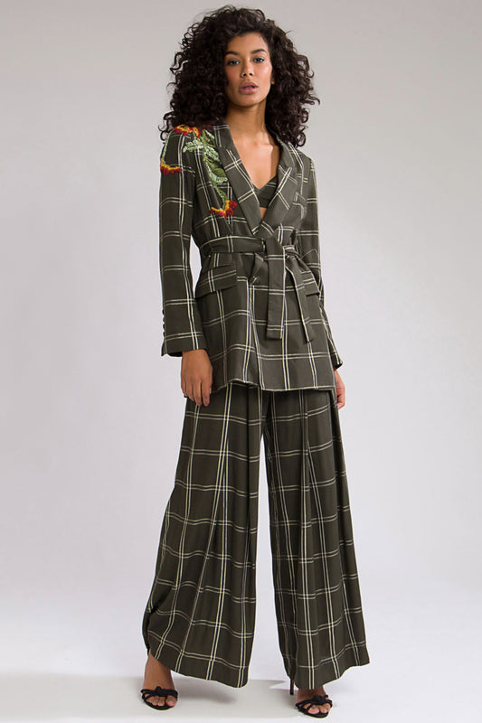 BLAZER XADREZ BORDADO MANGA LONGA VERDE ESCURO